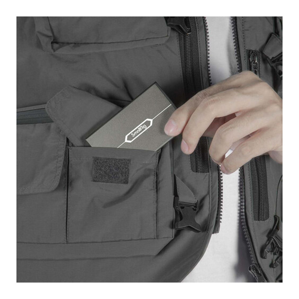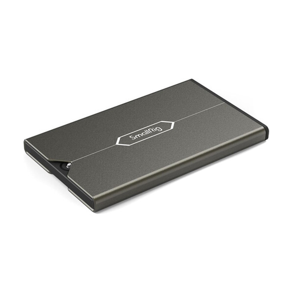 El estuche para tarjetas de memoria 2832B de SmallRig es un producto útil para fotógrafos profesionales y entusiastas de la fotografía. Puede almacenar tres tarjetas SD y 5 tarjetas TransFlash/MicroSD. Cada tarjeta de memoria tiene un compartimento independiente y especialmente diseñado en el interior del estuche que se desliza dentro de la carcasa exterior. Esta carcasa exterior está hecha de una aleación de aluminio, mientras que la carcasa interior está hecha de material plástico ABS + PC.