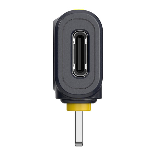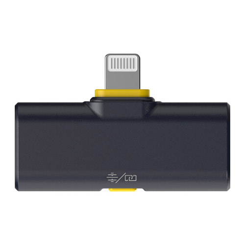 El receptor inalámbrico LARK M2 de Hollyland, en color carbón brillante con conector Lightning, es una parte esencial del sistema LARK M2 para dispositivos iOS. Está diseñado para mejorar la calidad del audio en la grabación de contenido móvil, permitiendo conectarse a un transmisor (disponible por separado) utilizando tecnología inalámbrica de 2.4 GHz a una distancia de hasta 305 metros.