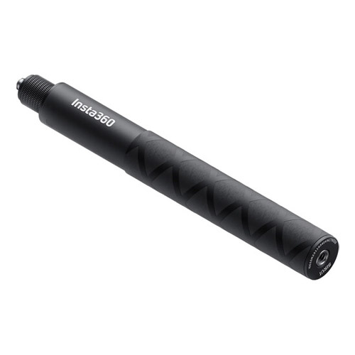 El palo es invisible cuando se usan las cámaras 360 y se puede quitar de la toma en modo selfie. La parte superior del palo tiene un tornillo de 1/4″-20 para montar tu cámara o accesorio, y la parte inferior del palo tiene una rosca de 1/4″-20 para montarlo en un soporte o agregar un accesorio como una correa opcional que tiene un tornillo de 1/4″-20.