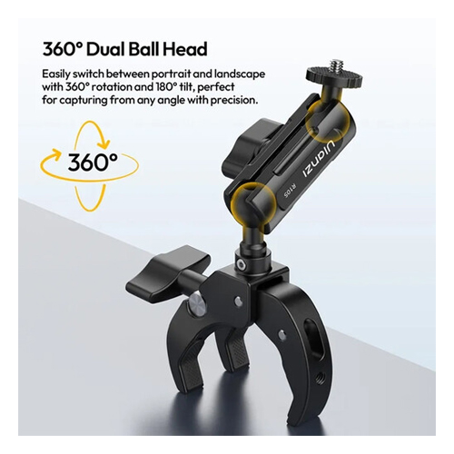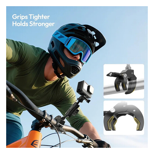 La abrazadera para riel de bicicleta Ulanzi R105 en forma de Y está diseñada para fijar cámaras ligeras de manera segura en el manillar de una bicicleta u otras superficies planas o con forma de poste. Sus almohadillas de goma antideslizantes garantizan una sujeción firme sin dañar la superficie, mientras que su gran perilla de ajuste permite aflojar o apretar fácilmente el rango de sujeción de 1,2 a 5,5 cm, incluso con guantes. Incluye un tornillo de 6,35 mm (1/4″-20) y un adaptador para cámara de acción, lo que la hace compatible con una amplia variedad de equipos. Además, su rótula doble giratoria de 360° permite ajustar con precisión el ángulo de la cámara para lograr la toma perfecta desde cualquier posición.