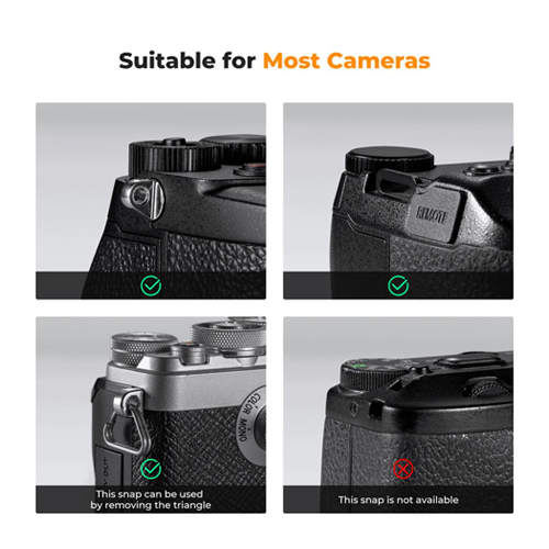 Para una sujeción fiable, incorpora anillos de acero inoxidable, compatibles con la mayoría de cámaras DSLR y SLR, que garantizan un ajuste seguro y universal. Además, su diseño ergonómico y ligero permite llevarla cómodamente al cuello o al hombro, ideal para largas sesiones fotográficas sin causar molestias.