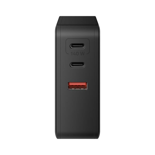 El cargador GaN de 140 W ofrece carga ultrarrápida y eficiente gracias a su tecnología Power Delivery (PD) por USB-C, ideal para celulares, tablets, laptops y consolas portátiles. Además, cuenta con USB Quick Charge (QC) de 30 W, compatible con Qualcomm® y Turbo Power®, que carga hasta un 75 % más rápido en dispositivos compatibles.