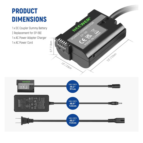 • 1 batería ficticia con acoplador de CC (reemplazo para EP-5B)