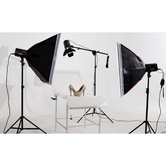 Mesa plegable para fotografía de productos, de 60cm x 130cm, con respaldar variable en ángulo.