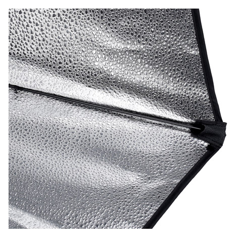 Este softbox crea una luz uniforme y difusa dirigiéndola a través de su superficie interior de tela aluminizada, que actúa como un eficiente reflector.