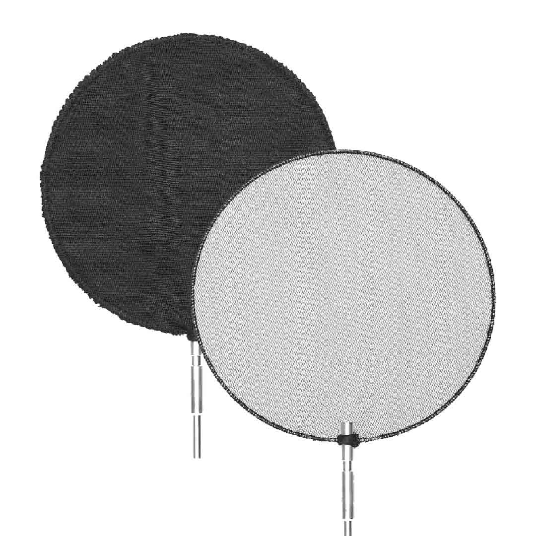 Se pueden utilizar pantallas negras de malla simple y doble para controlar la luz incidente y alterar su contraste. Una pantalla de una sola cuadrícula proporciona una difusión moderada, reduce el contraste y abre las sombras mientras mantiene un grado de nitidez. La pantalla de seda, por otro lado, ofrece difusión para una apariencia notablemente suave. La tela negra sólida es ideal para bloquear la luz no deseada del sujeto o crear sombras.