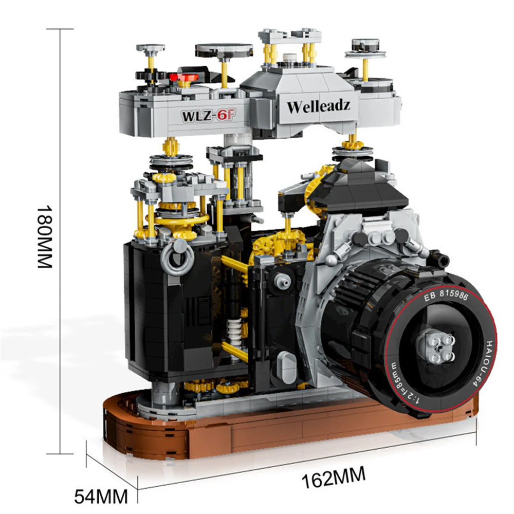 Fabricada con material ABS de alta calidad, nuestra cámara armable WLZ-6F de 1030 piezas cuenta con esquinas suaves que no dañarán tus manos durante el proceso de construcción. Sus dimensiones compactas, tanto en la caja de (21 x 7 x 28 cm) como en el producto final (18 x 5,4 x 16,2 cm), la hacen perfecta para un increíble pieza en tu estudio, oficina, sala o dormitorio.