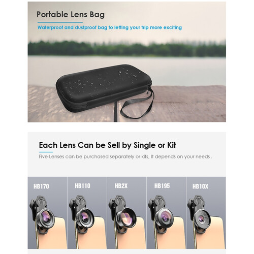 Este paquete esencial contiene una selección de lentes versátiles que elevarán tus habilidades fotográficas. Con el lente de zoom 2x, lente gran angular de 0.6x / 110°, lente súper gran angular de 170°, lente ojo de pez de 195° y lente macro 10x, podrás capturar imágenes impresionantes y creativas.