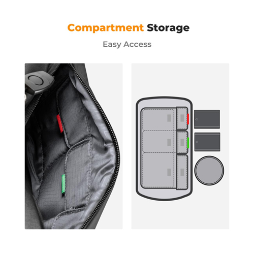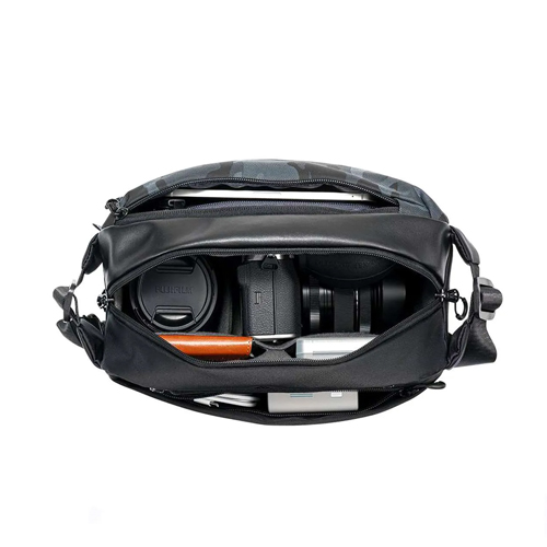 La bolsa bandolera Alpha de K&F Concept, con unas dimensiones de 33 × 22 × 15 cm y una capacidad de 10 litros, puede alojar sin problema una cámara y dos objetivos. Su diseño versátil permite usarla como bandolera, riñonera, bolso de pecho o bolso de mano. Está fabricada con tela impermeable y resistente a arañazos y desgaste, e incorpora algodón EPE de alta densidad de 10 mm para una protección eficaz contra golpes. El compartimento interior es extraíble y cuenta con divisores flexibles, ideales tanto para objetivos de fotografía profesional como para usos diarios. Incluye una doble cremallera que facilita el acceso desde ambos lados y anillas que se pueden entrelazar para mayor seguridad. Su interior ofrece hasta tres niveles de compartimentos para mantener cámaras, accesorios y objetos personales perfectamente organizados. Además, la correa ajustable, que alcanza los 130 cm, es más larga y ancha que la de la mayoría de bandoleras del mercado, lo que la hace adecuada para distintos tipos de cuerpo. Completa su diseño una hebilla magnética capaz de soportar hasta 60 kg y una correa de esternón ajustable que mantiene la bolsa estable incluso en caminatas largas.