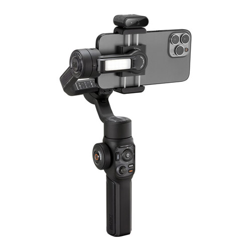 Una luz de relleno integrada en el brazo del eje de inclinación ofrece una salida máxima de 650 lux. Los puntos de montaje magnéticos a cada lado de la abrazadera del teléfono inteligente admiten la fijación del rastreador AI o luces de relleno magnéticas. El panel de control ha sido rediseñado para un cambio de modo más intuitivo y ajuste de la luz de relleno, entre otros parámetros. El Gimball tiene conectividad Bluetooth 5.1 para compatibilidad con las aplicaciones ZY Cami y StaCam para un control aún más creativo. Una batería incorporada de 2600 mAh puede funcionar durante 26 horas en modo de espera y se recarga completamente en 2 horas mediante el protocolo de carga rápida PD.