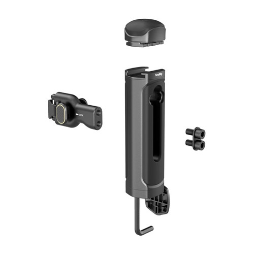 Diseñado para teléfonos de entre 2,5 y 3,5″ de ancho, el kit de vídeo todo en uno para creadores de smartphones (Quick Basic Edition) ofrece una solución eficiente y compacta para la grabación de vídeos profesionales con smartphones. Este kit incluye una jaula de liberación rápida universal para smartphones y un asa lateral de liberación rápida con un control inalámbrico desmontable que funciona con tecnología de 2,4 GHz y tiene un alcance de hasta 32,8′. El diseño de la jaula presenta múltiples orificios roscados de 1/4″-20 y soportes para zapata fría, lo que permite a los usuarios colocar una amplia gama de accesorios. Además, permite colocar filtros magnéticos de 67 mm y cuenta con un orificio para correa de hombro y una ranura de montaje en base. La jaula se puede fijar de forma segura a su teléfono mediante el accesorio MagSafe o un clip para teléfono. El asa lateral de liberación rápida se puede colocar y quitar rápidamente y puede funcionar como asa lateral y superior, según cómo se monte.