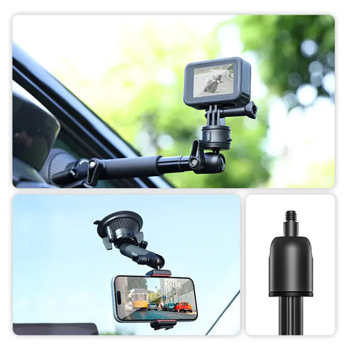 El soporte de ventosa para cámara ULANZI ZJ01 ofrece una flexibilidad excepcional, permitiéndole capturar tomas desde diversos ángulos dentro y fuera de su vehículo. Puede colocarlo en el techo corredizo, el parabrisas, las ventanas laterales o superficies externas del automóvil, así como en azulejos de cocina o puertas de vidrio, asegurando un agarre estable en distintos escenarios y logrando múltiples ángulos y tomas.