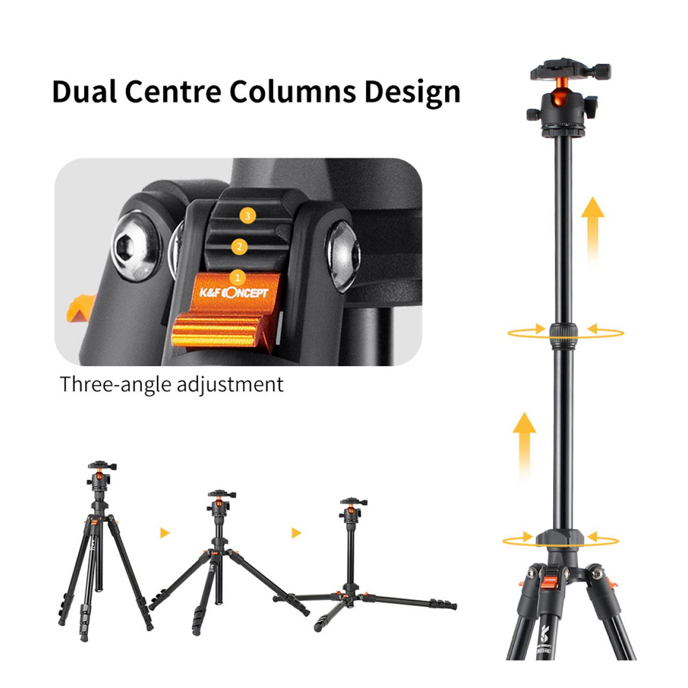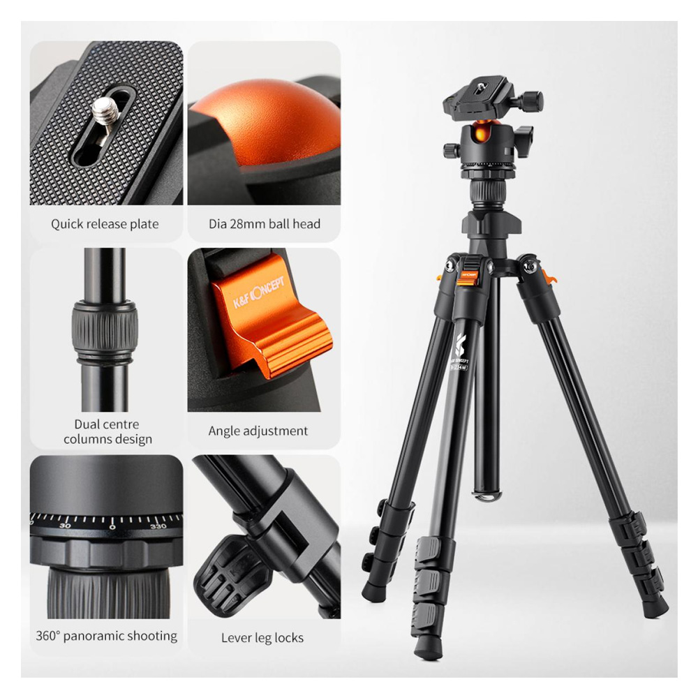 Tripode K&F Concept K234A0 BH-28L, 160cm, 8kg (KF09.101V1)