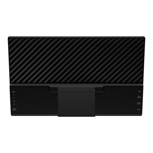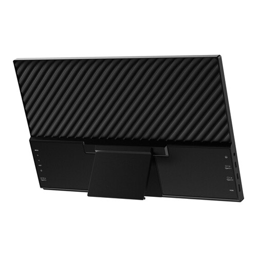 El monitor puede ser alimentado mediante una fuente USB-C (adquirida por separado). También incluye un puerto USB-C adicional para conectar un teclado y mouse, lo que facilita el control de la computadora o el smartphone vinculado. Para audio, cuenta con un conector de entrada de 3,5 mm y altavoces integrados.